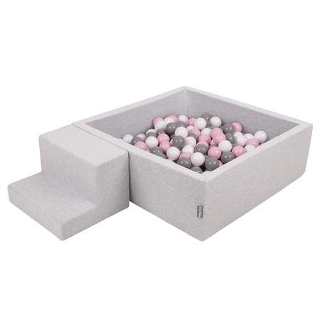KiddyMoon Spielplatz aus Schaumstoff mit Quadrat Bällebad Ballgruben für Babys Spielbad Hindernisläufen, Hergestellt in der EU, hellgrau:weiß/grau/puderrosa, Bällebad (100 Bälle) + Stüfchen