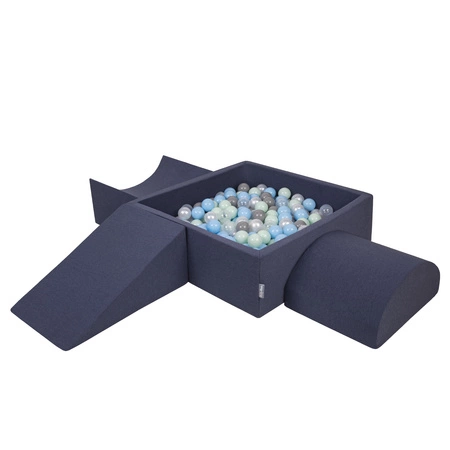 KiddyMoon Spielplatz aus Schaumstoff mit Quadrat Bällebad Bälle Hindernisläufen, dunkelblau:perle/grau/transparent/babyblue/minze, Bällebad (200 Bälle) + Version 4