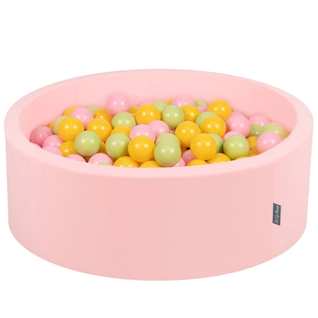 KiddyMoon Bällebad Bällepool mit bunten Bällen ∅ 7Cm für Babys Kinder Rund, pink:hellgrün/gelb/puderrosa, 90x30cm/200 Bälle