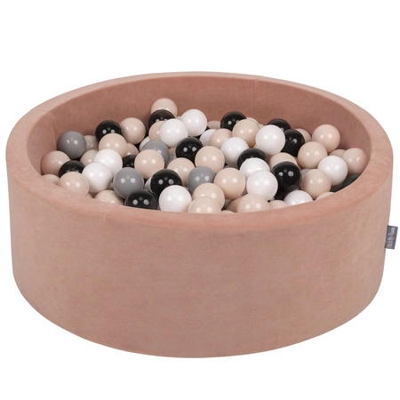 KiddyMoon Rund Bällebad Velvet Bällepool ∅ 7Cm Ballgruben Für Babys Spielbad Kleinkinder, Hergestellt in der EU, wüstenrosa: pastellbeige/grau/weiß/schwarz, 90x30cm/200 Bälle