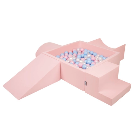 KiddyMoon Spielplatz aus Schaumstoff mit Quadrat Bällebad Bälle Hindernisläufen, pink:babyblue/puderrosa/perle, Bällebad (200 Bälle) + Version 5