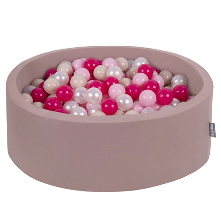 KiddyMoon Rundes Bällebad Schaumstoff mit Bällen baby kinderzimmer, erikafarben: pastellbeige/puderrosa/perle/dunkelpink, 90x30cm/200 Bälle