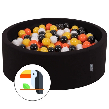 KiddyMoon Bällebad Bällepool mit bunten Bällen ∅ 7Cm  für Babys Kinder Rund, Tukan:schwarz/weiß/orange/gelb, 90x30cm/200 Bälle