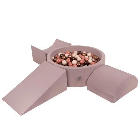 KiddyMoon Spielplatz aus Schaumstoff mit Bällebad und Bällen Hindernisläufen, erikafarben:braun/kupferrot/pastellbeige/lachsfarben, Bällebad (200 Bälle) + Version 4