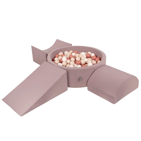 KiddyMoon Spielplatz aus Schaumstoff mit Bällebad und Bällen Hindernisläufen, erikafarben:pastellbeige/lachsfarben/weiß, Bällebad (200 Bälle) + Version 4