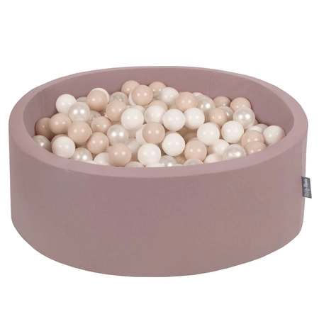 KiddyMoon Rundes Bällebad Schaumstoff mit Bällen baby kinderzimmer, erikafarben: pastellbeige/weiß/perle, 90x30cm/200 Bälle