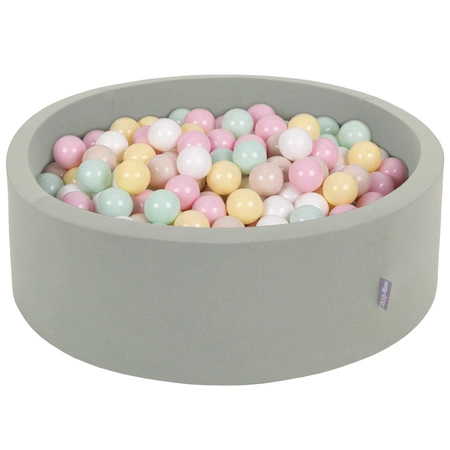 KiddyMoon Bällebad Bällepool mit bunten Bällen ∅ 7Cm für Babys Kinder Rund, salbeifarben:pastellbeige/pastellgelb/weiß/minze/puderrosa, 90x30cm/200 Bälle