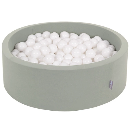 KiddyMoon Bällebad Bällepool mit bunten Bällen ∅ 7Cm  für Babys Kinder Rund, salbeifarben:weiß, 90x30cm/200 Bälle
