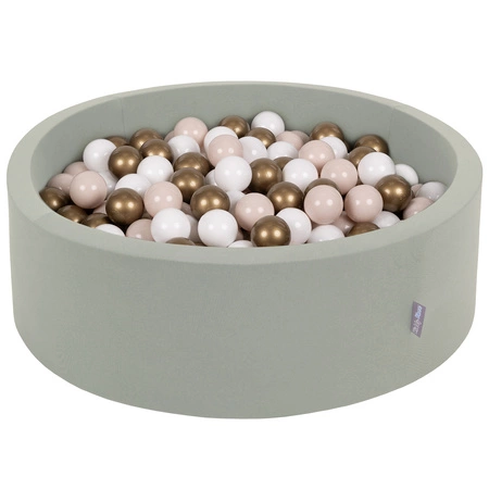 KiddyMoon Bällebad Bällepool mit bunten Bällen ∅ 7Cm für Babys Kinder Rund, salbeifarben:pastellbeige/weiß/golden, 90x30cm/200 Bälle