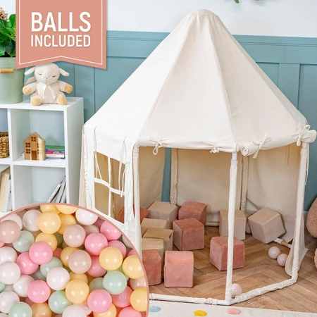 Schaffen Sie mit unserem eleganten Spielhaus in Pavillonform einen einzigartigen Ort zum Spielen für Ihr Kind. Dieses geräumige Haus aus hochwertigem Baumwollstoff in einer dezenten, natürlichen Farbe ist die perfekte Kombination aus Stil, Funktionalität und Komfort. Es bietet Ihrem Kind eine zauberhafte Oase, die seine Fantasie anregt und zu seinem Lieblingsort zum Spielen, Lesen oder Entspannen wird.
