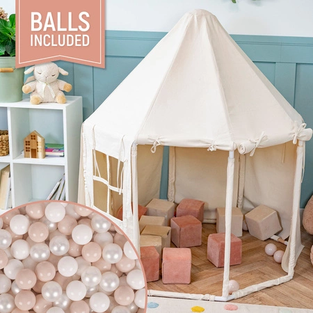 Schaffen Sie mit unserem eleganten Spielhaus in Pavillonform einen einzigartigen Ort zum Spielen für Ihr Kind. Dieses geräumige Haus aus hochwertigem Baumwollstoff in einer dezenten, natürlichen Farbe ist die perfekte Kombination aus Stil, Funktionalität und Komfort. Es bietet Ihrem Kind eine zauberhafte Oase, die seine Fantasie anregt und zu seinem Lieblingsort zum Spielen, Lesen oder Entspannen wird.