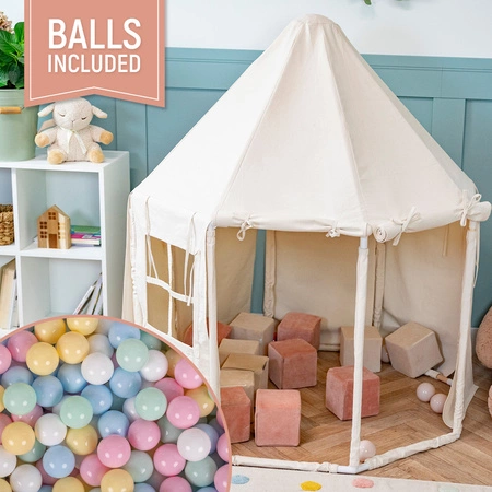 Schaffen Sie mit unserem eleganten Spielhaus in Pavillonform einen einzigartigen Ort zum Spielen für Ihr Kind. Dieses geräumige Haus aus hochwertigem Baumwollstoff in einer dezenten, natürlichen Farbe ist die perfekte Kombination aus Stil, Funktionalität und Komfort. Es bietet Ihrem Kind eine zauberhafte Oase, die seine Fantasie anregt und zu seinem Lieblingsort zum Spielen, Lesen oder Entspannen wird.