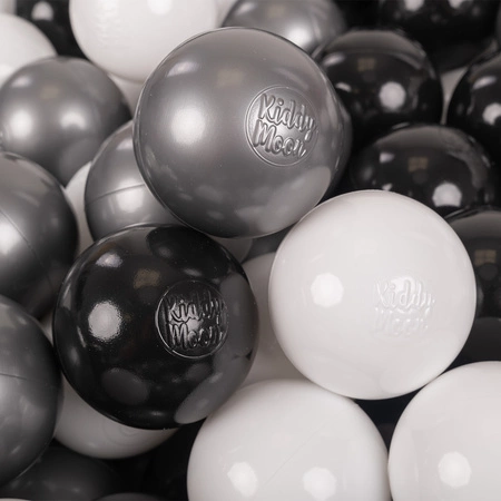 KiddyMoon Kinder Bälle für Bällebad Baby Spielbälle Plastikbälle ∅7cm Made in EU, weiß/schwarz/silbern, 200 Bälle/7cm