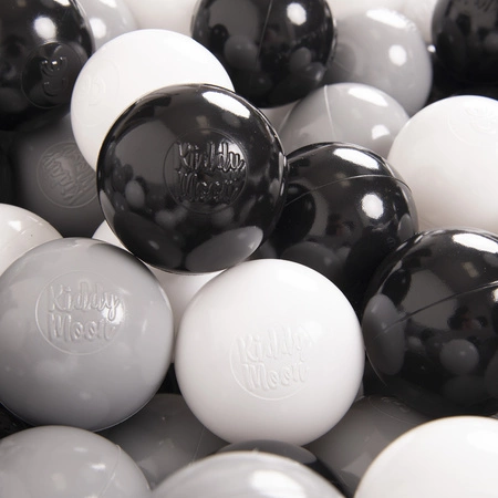 KiddyMoon Kinder Bälle für Bällebad Baby Spielbälle Plastikbälle ∅7cm Made in EU, weiß/schwarz/grau, 200 Bälle/7cm