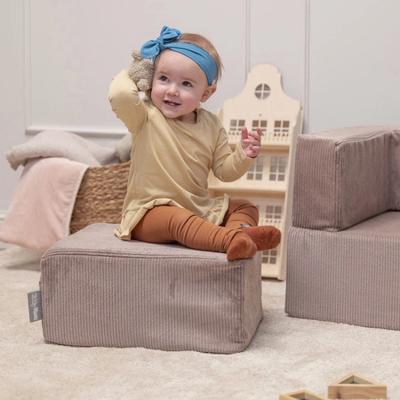 KiddyMoon Kindersofa mit Zwei Weichen Puffen Für Kinder Bequemes und Leichtes Schaumstoff-Sofa Gerippter Stoff Abnehmbarer Bezug Perfekt für Entspannung und Kreativität, dunkelbeige, Sofa/Puff