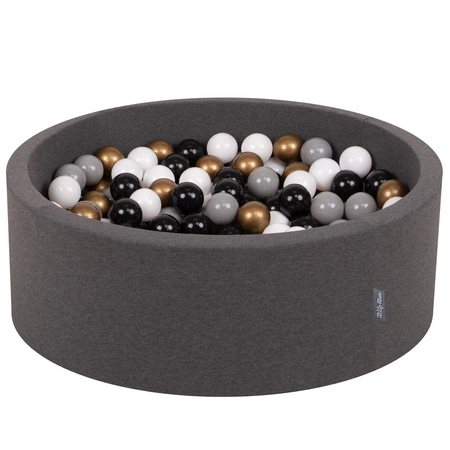 KiddyMoon Bällebad Bällepool mit bunten Bällen ∅ 7Cm  für Babys Kinder Rund, dunkelgrau:weiß/grau/schwarz/gold, 90x30cm/300 Bälle