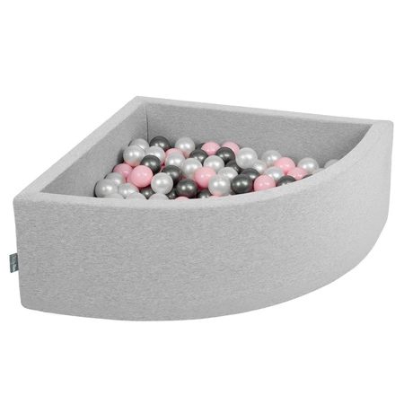 KiddyMoon Viertel Eckig Bällebad Bällepool ∅ 7Cm Ballgruben Für Babys Spielbad Kleinkinder, Hergestellt in der EU, hellgrau:perle/puderrosa/silbern, 90x30cm/300 Bälle