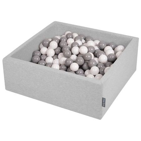 KiddyMoon Bällebad Bällepool mit bunten Bällen ∅ 7Cm für Babys Kinder Quadrat, hellgrau:weiß/grau, 90x30cm/300 Bälle