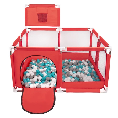 Laufstall mit Korb und Bällen Laufgitter für Kinder, Rot:grau/weiß/türkis, 400 Bälle