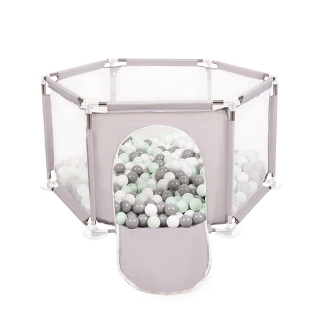 Sechseckiger Laufstall mit Bällen Laufgitter für Kinder, Grau:weiß/grau/minze, 400 Bälle