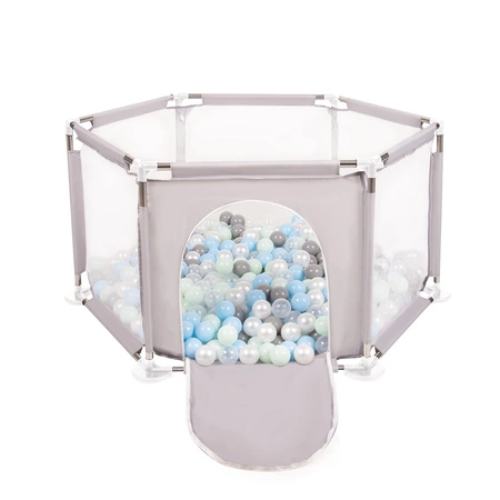 Sechseckiger Laufstall mit Bällen Laufgitter für Kinder, Grau:perle/grau/transparent/babyblau/minze, 900 Bälle