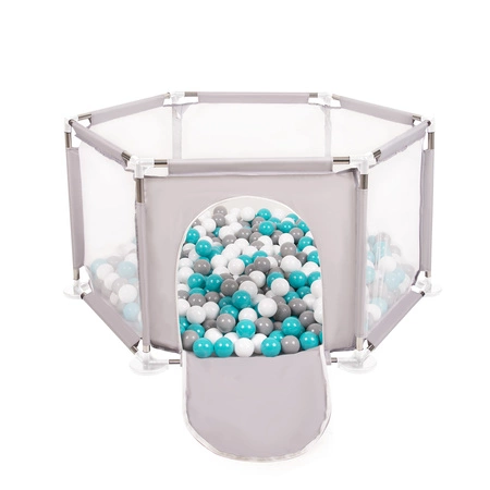 Sechseckiger Laufstall mit Bällen Laufgitter für Kinder, Grau:grau/weiß/türkis, 400 Bälle