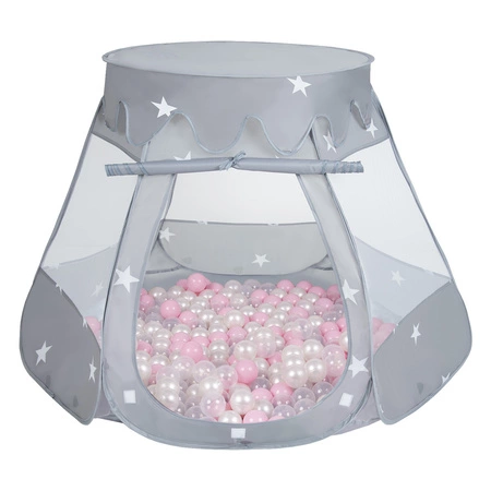 Baby Spielzelt Mit Plastikbällen Für Kinder Leicht und Kompakt ideal für Drinnen Und Draußen Fördert Sensorische Integration Schneller Aufbau, grau:puderrosa/perle/transparent, 300 Stück