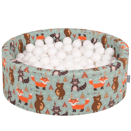KiddyMoon Rund Bällebad Bällepool ∅ 7Cm Ballgruben Mit Bunten Bällen Für Babys Spielbad Kleinkinder, Hergestellt in der EU, Füchse-grün:weiß, 90x30cm/300 Bälle