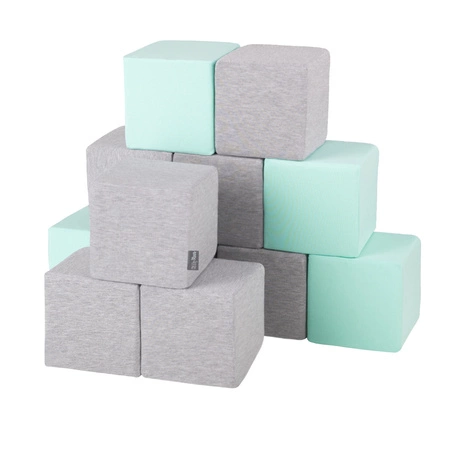 KiddyMoon Schaumstoff Würfel für Baby Weiche Blöcke Schaum Spielzeug Montessori-Spielzeug mit Schaum und viel Spaß für Kinder, Blöcke: hellgrau-mint, 12 Stücke