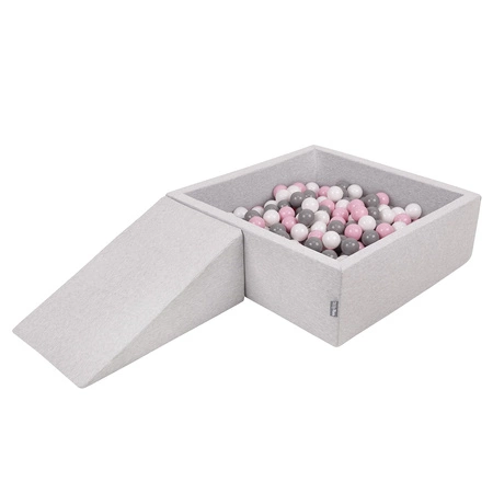KiddyMoon Spielplatz aus Schaumstoff mit Quadrat Bällebad Bälle Hindernisläufen, hellgrau:weiß/grau/puderrosa, Bällebad (200 Bälle) + Zwickel
