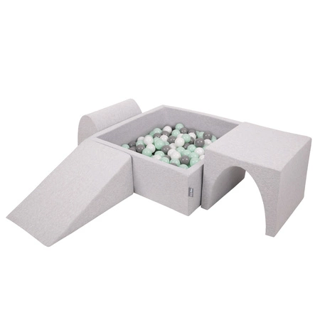 KiddyMoon Spielplatz aus Schaumstoff mit Quadrat Bällebad Bälle Hindernisläufen, hellgrau:weiß/grau/minze, Bällebad (300 Bälle) + Version 2