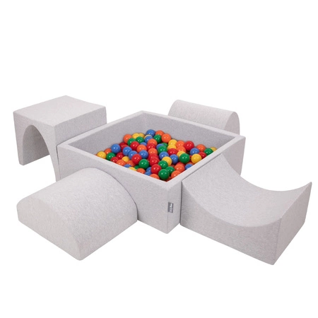 KiddyMoon Spielplatz aus Schaumstoff mit Quadrat Bällebad (300 Bälle) Ballgruben für Babys Spielbad Hindernisläufen, Hergestellt in der EU, hellgrau:gelb/grün/blau/rot/orange, Bällebad (200 Bälle) + Version 1