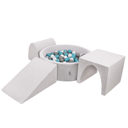 KiddyMoon Spielplatz aus Schaumstoff mit Bällebad und Bällen Hindernisläufen, hellgrau:grau/weiß/türkis, Bällebad (300 Bälle) + Version 2