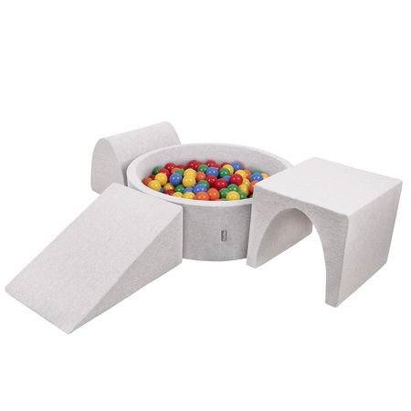 KiddyMoon Spielplatz aus Schaumstoff mit Bällebad und Bällen Hindernisläufen, hellgrau:gelb/grün/blau/rot/orange, Bällebad (300 Bälle) + Version 2