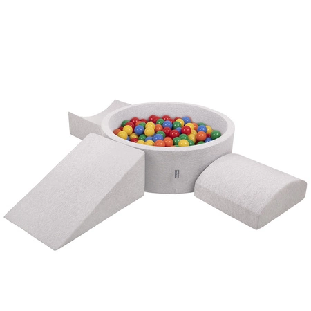 KiddyMoon Spielplatz aus Schaumstoff mit Bällebad und Bällen Hindernisläufen, hellgrau:gelb/grün/blau/rot/orange, Bällebad (300 Bälle) + Version 4