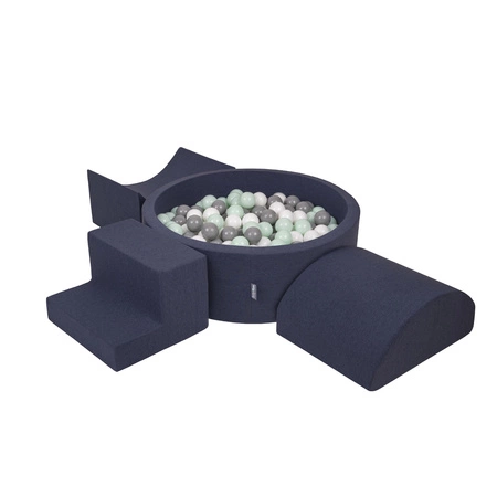 KiddyMoon Spielplatz aus Schaumstoff mit Bällebad und Bälle Hindernisläufen, dunkelblau:weiß/grau/minze, Bällebad (300 Bälle) + Version 6