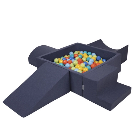 KiddyMoon Spielplatz aus Schaumstoff mit Quadrat Bällebad Bälle Hindernisläufen, dunkelblau:hellgrün/orange/türkis/blau/bblue/gelb, Bällebad (300 Bälle) + Version 5