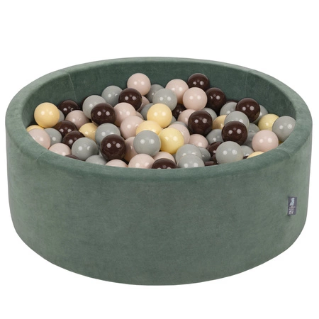 KiddyMoon Rund Bällebad Velvet Bällepool ∅ 7Cm Ballgruben Für Babys Spielbad Kleinkinder, Hergestellt in der EU, waldgrün: pastellbeige/grüngrau/pastellgelb/braun, 90x30cm/300 Bälle