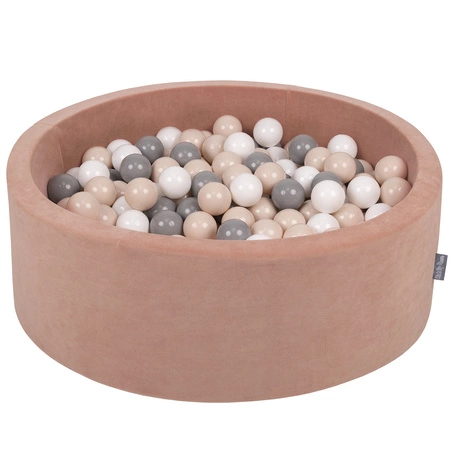 KiddyMoon Rund Bällebad Velvet Bällepool ∅ 7Cm Ballgruben Für Babys Spielbad Kleinkinder, Hergestellt in der EU, wüstenrosa: pastellbeige/grau/weiß, 90x30cm/300 Bälle