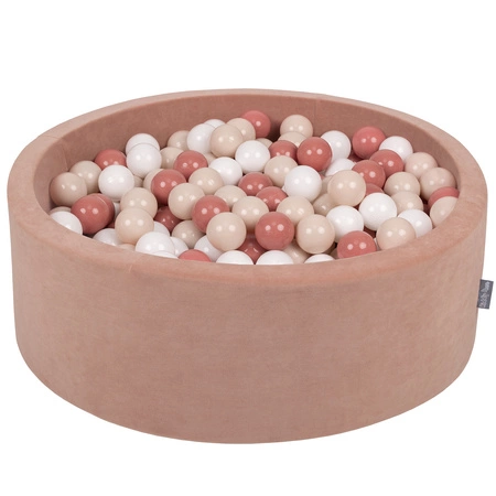 KiddyMoon Rund Bällebad Velvet Bällepool ∅ 7Cm Ballgruben Für Babys Spielbad Kleinkinder, Hergestellt in der EU, wüstenrosa: pastellbeige/lachsfarben/weiß, 90x30cm/300 Bälle