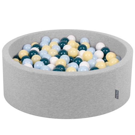 KiddyMoon Bällebad Bällepool mit bunten Bällen ∅ 7Cm  für Babys Kinder Rund, hellgrau:dunkeltürkis/pastellblau/pastellgelb/weiß, 90x30cm/200 Bälle