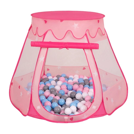 Baby Spielzelt Mit Plastikbällen Für Kinder Leicht und Kompakt ideal für Drinnen Und Draußen Fördert Sensorische Integration Schneller Aufbau, pink:weiß-grau-babyblau-puderrosa, 200 Stück