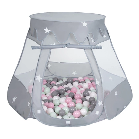 Baby Spielzelt Mit Plastikbällen Für Kinder Leicht und Kompakt ideal für Drinnen Und Draußen Fördert Sensorische Integration Schneller Aufbau, grau:weiß/garu/mint/puderrrosa, 100 Stück