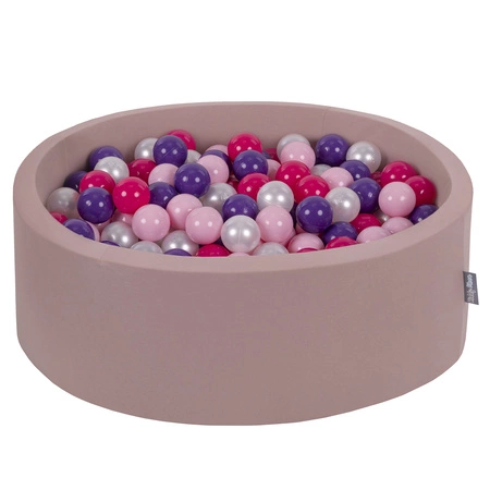 KiddyMoon Rundes Bällebad Schaumstoff mit Bällen baby kinderzimmer, erikafarben: puderrosa/perle/violett/dunkelpink, 90x30cm/300 Bälle