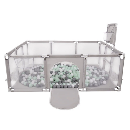 Laufstall Baby Großer Spielplatz mit Bällen Laufgitter für Kinder, grau: weiß/grau/minze, 200 Bälle