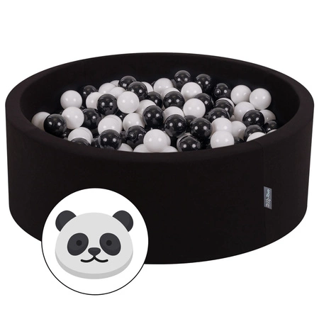 KiddyMoon Bällebad Bällepool mit bunten Bällen ∅ 7Cm für Babys Kinder Rund, Panda:schwarz/weiß, 90x30cm/300 Bälle