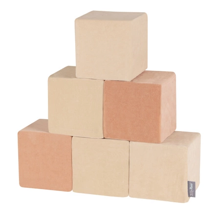 KiddyMoon Schaumstoff Würfel für Baby aus Velours Weiche Blöcke Schaum Spielzeug Montessori-Spielzeug mit Schaum und viel Spaß für Kinder, Blöcke:Sandbeige/Wüstenrosa, 12 Stücke