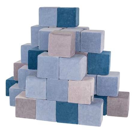 KiddyMoon Schaumstoff Würfel für Baby aus Velours Weiche Blöcke Schaum Spielzeug Montessori-Spielzeug mit Schaum und viel Spaß für Kinder, Hergestellt in der EU, Blöcke:Lagunetürkis-Eisblau-Berggrau, 48 Stücke