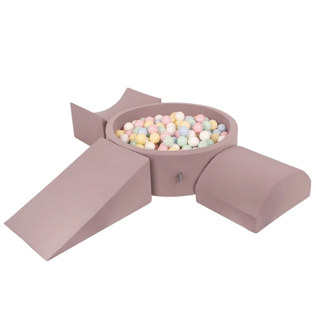 KiddyMoon Spielplatz aus Schaumstoff mit Bällebad und Bällen Hindernisläufen, erikafarben:pastellblau/pastellgelb/weiß/minze/puderrosa, Bällebad (300 Bälle) + Version 4