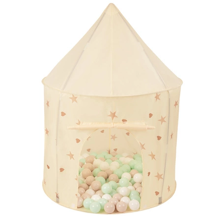 Spielzelt Für Kinder Pavillon Kinderzelt Indoor Outdoor Spielhaus, hellbeige: pastellbeige/weiß/minze, 400 Bälle